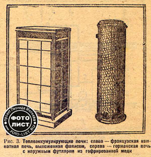 Эти новые теплоаккумулирующие устройства на много приблизили электрофикацию быта и, несмотря на свою сравнительную неэкономичность (в 1,5 раза дороже газового отопления, в 2,6 – антрацитового и в 3,1 – отопления дешевым углем), объясняющуюся новизной дела и малым опытом конструкторов, уже успели приобрести многих сторонников вследствие своего удобства, простоты, автоматичности действия и абсолютной чистоты.